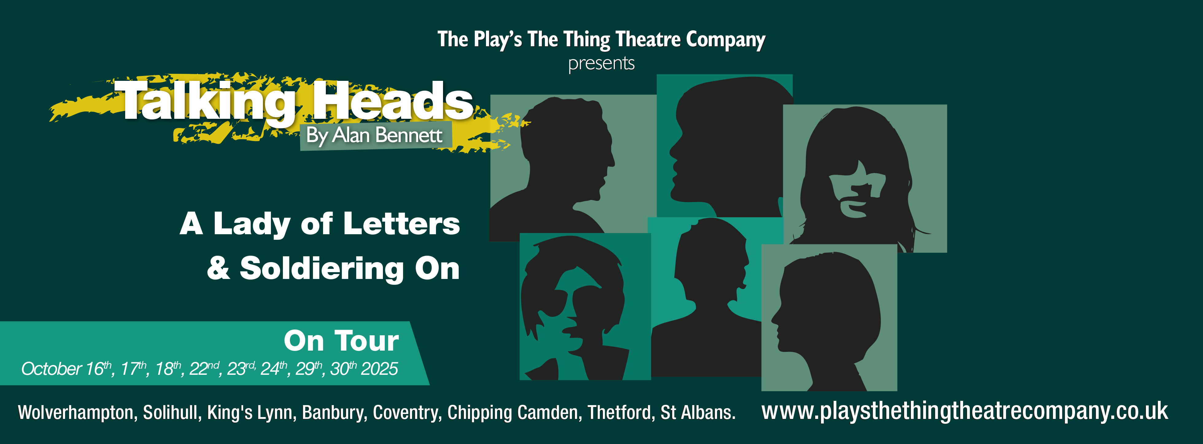 A monologue is unique. A powerful piece of theatre due to the intimacy it creates. It is as though we are in the room with that one person, and they are speaking directly to us. For example, audiences watching ‘Soldering On’ and ‘A Lady of Letters’ - the two ‘Talking Heads’ monologues by Alan Bennett that we are taking on tour in October - you could be sitting on the sofa with Irene or Muriel having a cup of tea and a chat.